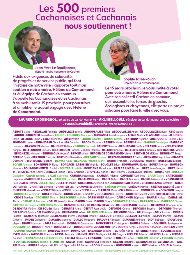Retrouvez les 500 premiers soutiens de Cachan en Commun !